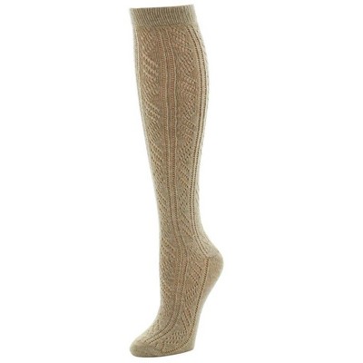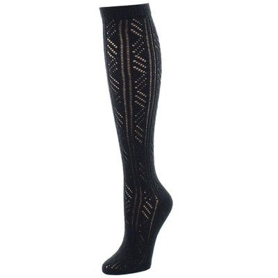 Memoi Women's Open Crochet Diamond Pattern Chunky Knee High Sock