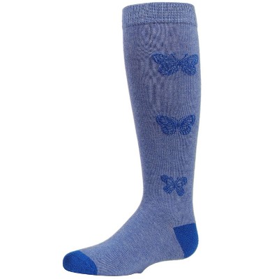 Memoi Girls' Glitter Butterfly Cotton Knee High Socks