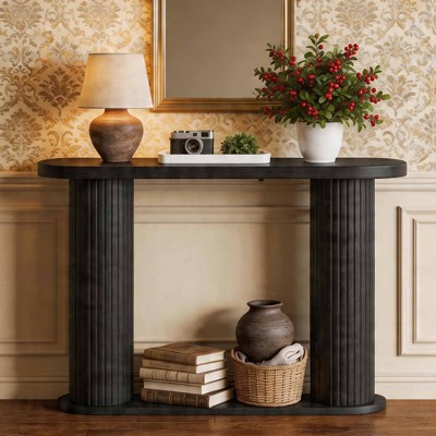 Fluted Wooden Console Table Farmhouse 2 Tier with Shelf Storage Rectangular Narrow Entryway Table Behind Couch for Foyer Hallway Living Room