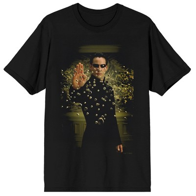 The Matrix Neo Floats Bullets Adult Black Crew Neck Short Sleeve Tee