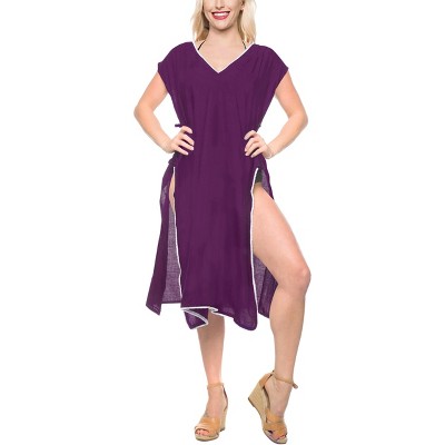 HAPPY BAY Women's Vacation Beachwear Long Bathing Suit Summer Short Front Tie Swimsuit Cover Ups Medium-Large Purple Solid