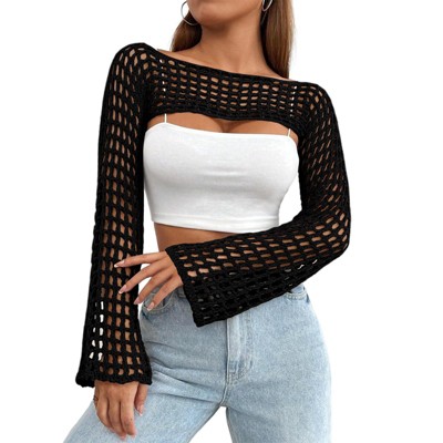 Allegra K Women's Ruched Off Shoulder Push Up Party Mesh Sheer Long Sleeve Corset Crop Top