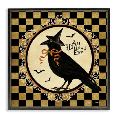 Stupell Industries All Hallow's Eve Halloween Crow Framed Giclee Art, Black, 12" x 12"