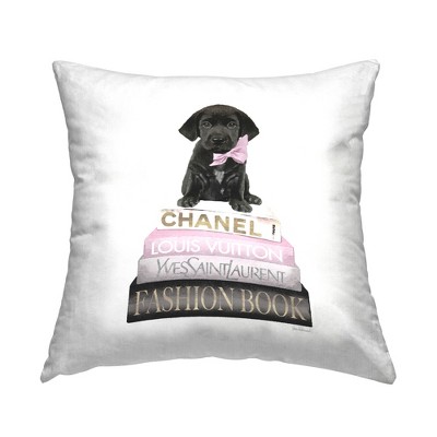 Stupell Industries Black Lab Puppy Pastel Glam Books Indoor Decorative Throw Pillow, 18 x 18