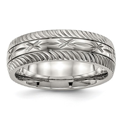 Chisel Stainless Steel Polished and Matte Black IP-plated 1/20 Carat Diamond Cross Band Ring