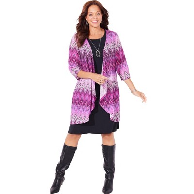 Roaman's Blouson Sleeve Faux Wrap Maxi Dress