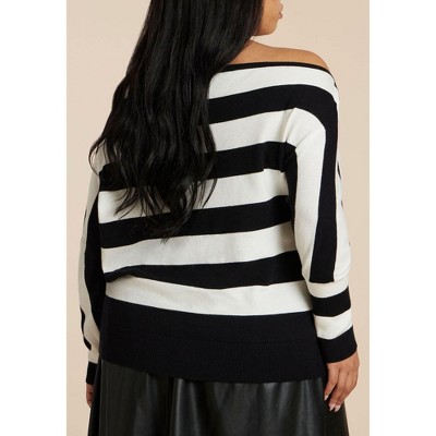 ELOQUII Sheer Stripe Sweater With Shoulder Pad
