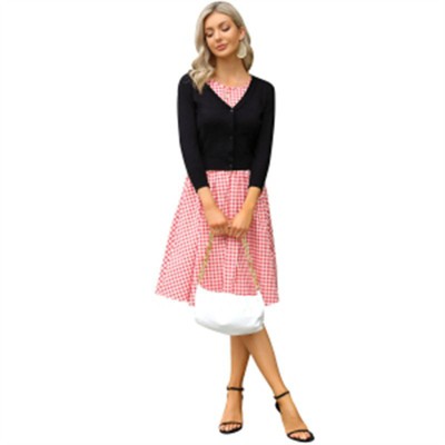 Women's 3/4 Sleeve Cropped Cardigan Summer Lightweight Button Down Sweater Crochet Knit Bolero Shrugs