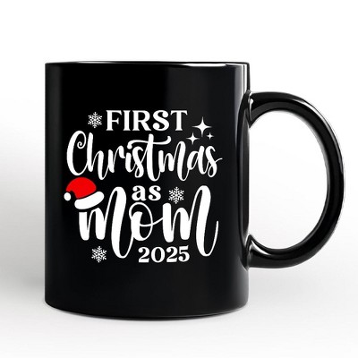 First Christmas as Mom 2025 Christmas Personalized Mug, Matching Family Holiday Gift with Custom Name Black 12oz