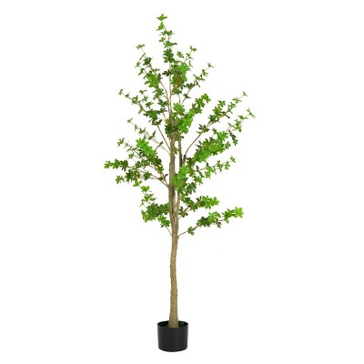 Gulches 76"H Artificial Enkianthus Tree Pre-Potted No Assembly Lifelike Leaves Black Plastic Pot Green