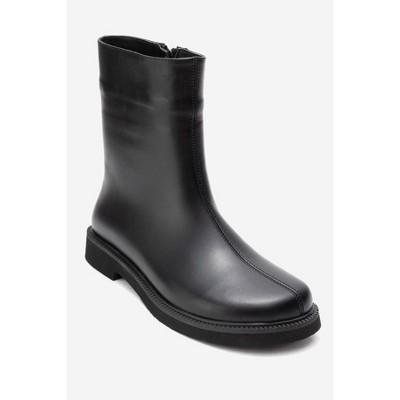 Noar - Black Genuine Leather Ruched Zip Boot (Women) | Forever & Always Shoes