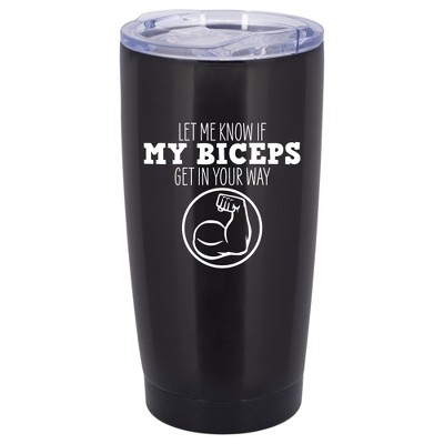 100 North 20 Ounce Stainless Steel On the Go Travel Tumbler With Push Top Lid, Biceps in Your Way Black