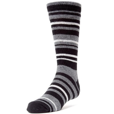 Memoi Boys' Horizontal Stripe Crew Socks Black 7-8