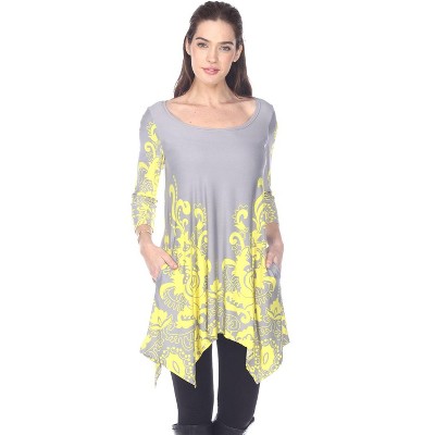 Women's 3/4 Sleeve Printed Rella Tunic Top with Pockets - White Mark