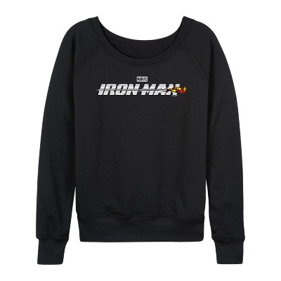 Women's - Iron Man - Horizontal Lightweight French Terry Wide Neck Long Sleeve Graphic Shirt