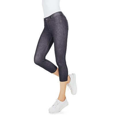 Memoi Denim Zipper Capri Cotton Blend Jean Leggings