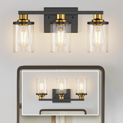 YANSUN 20 in. 3-Light Black and Gold Vanity Light with Clear Glass Shades for Bathroom or Bedroom Mirror
