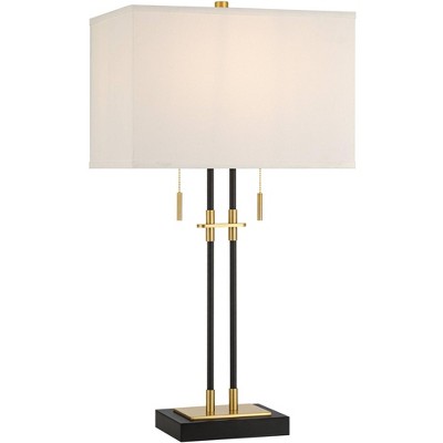 Franklin Iron Works Stefano 30 1/4" High Black and Gold 2-Light Pull Chain USB Table Lamp