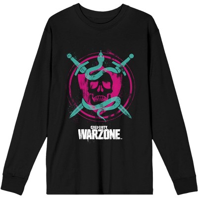 Call of Duty Warzone Shield with Skull, Snake, and Swords Men's Black Long Sleeve Shirt