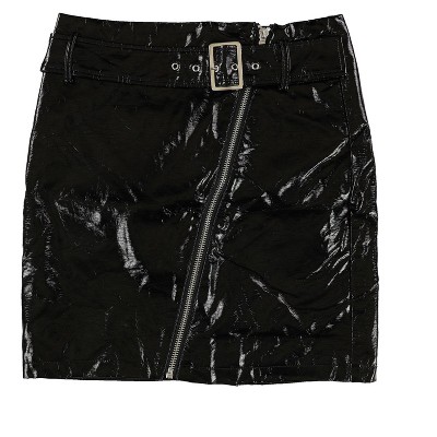 Women's Casual High Waist Fashion Asymmetric PU Leather Split Hemline Skirt A Line Casual Cocktail Party Mini Skirt