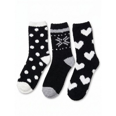 Tipi Toe Women's 3-Pairs Cozy Microfiber Anti-Skid Ebony Love Colorful Patterned Fuzzy Crew Socks