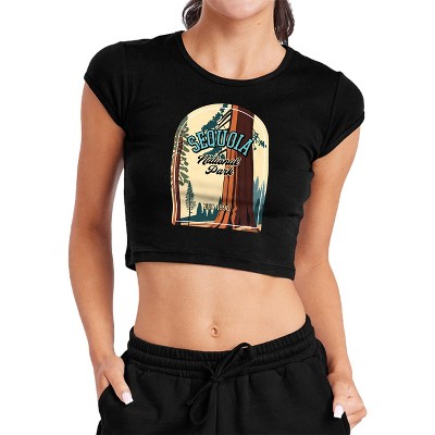Women's Sequoia National Park The Land of Giants Cap Sleeve Baby Rib Crop Top