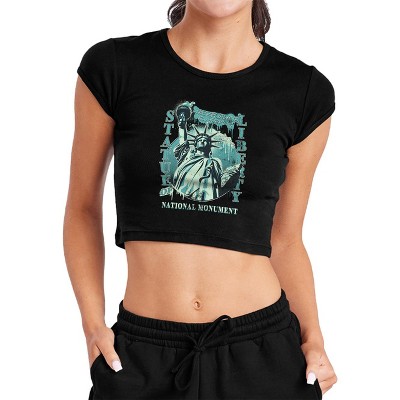 Women's Statue of Liberty National Monument New York City Cap Sleeve Baby Rib Crop Top