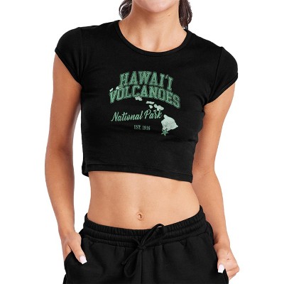 Women's Hawaii Volcanoes National Park State Line Cap Sleeve Baby Rib Crop Top