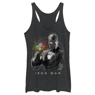 Women's Marvel Avengers Endgame Glowing Stones Logo Overlay Portrait Racerback Tank Top