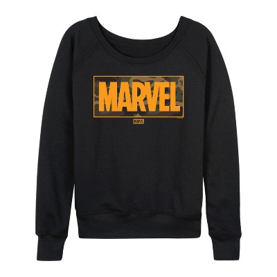 Women's - Marvel - Camo Logo Lightweight French Terry Wide Neck Long Sleeve Graphic Shirt