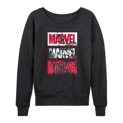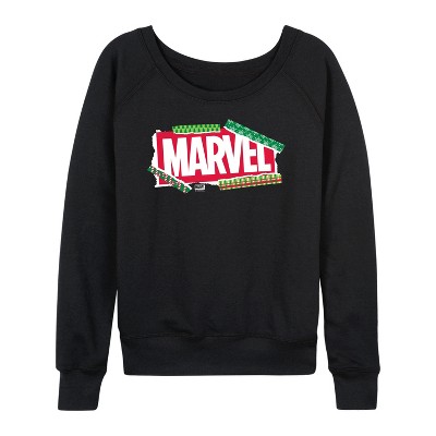 Women's - Marvel - Logo Wrapping Paper Lightweight French Terry Wide Neck Long Sleeve Graphic Shirt