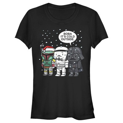 Juniors Womens Star Wars Christmas Boba It's Cold Outside T-Shirt
