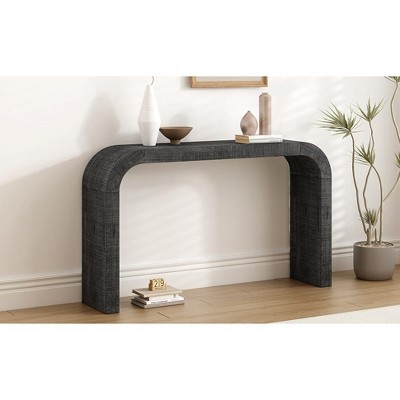 ORRD Black Accent 52" Farmhouse Wood Console Table, Curved Edge Cedar Veneer Entryway Table with Natural Texture
