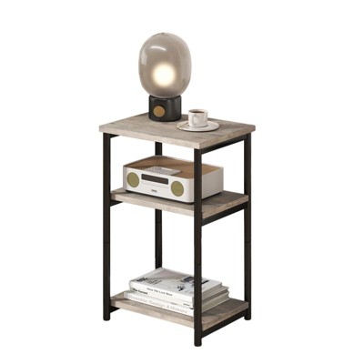 Slim 3-Tier Industrial Side Table – Space-Saving End Table with Storage Shelves & Magazine Rack for Living Room or Bedroom