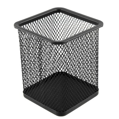 Unique Bargains Metal Mesh Rectangle Pen Holder Container Black 2.8" x 2.8" x 3.7"