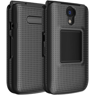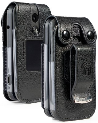 Nakedcellphone Case for Consumer Cellular Iris Flip Phone - Vegan Leather with Belt Clip - Black