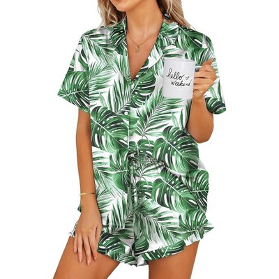 INSPIRE CHIC Women's Pajama Set Short Sleeve Lounge Set Elastic Shorts 2 Piece Pjs Sets with Pockets