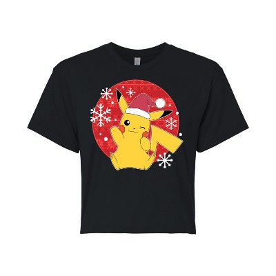 Women's - Pokémon - Pikachu Seasons Greetings Cropped Graphic T-Shirt