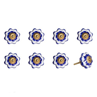 HomeRoots Set of Eight Blue And White Ceramic And Metal Drawer Pull Knobs