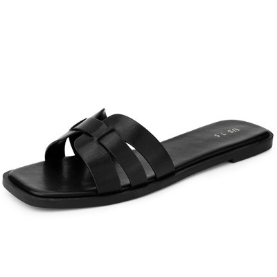 BLISSFUL STEP Women's Casual Square Toe Slip on Sandals Flat Slippers
