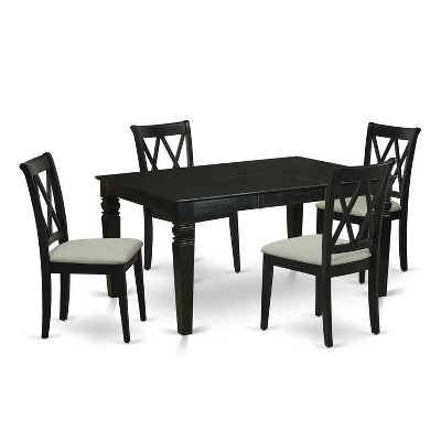 HomeStock 5-Piece Rectangle Black Finish Solid Wood Top Dining table with 4-Chairs with Butterfly Leaf Cross Back