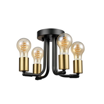 4-Light Matte Black Adjustable Socket Semi-Flush Mount Ceiling Light - Globe Electric: ETL Listed, Metal Body, No Shade