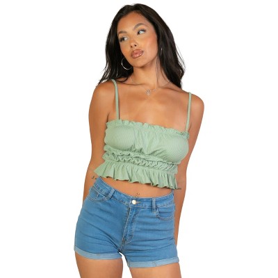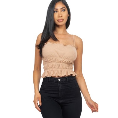 Slickblue Women's Ribbed Tiered Shirred Crop Top, Fitted Sleeveless Casual Tee, 5 Color Options, Size S-L