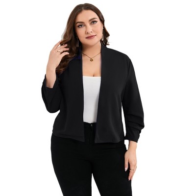 Women's Plus Size Blazer 3/4 Sleeve Padded Shoulder Open-Front Jacket Top
