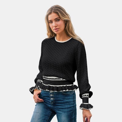 Women's Black Cozy Fuzzy Knit Sweater - Cupshe