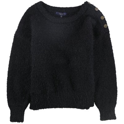 Anne Klein Womens Shoulder Button Pullover Sweater, black, X-Small