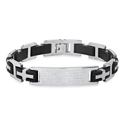 Steeltime Men's stainless steel and black rubber Our Father id link bracelet