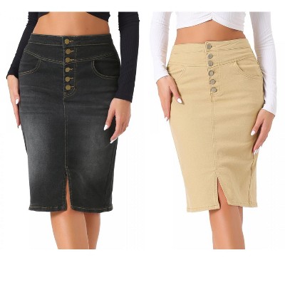INSPIRE CHIC Women's Denim Y2K Split Hem Midi Cargo Skirt with Pocket