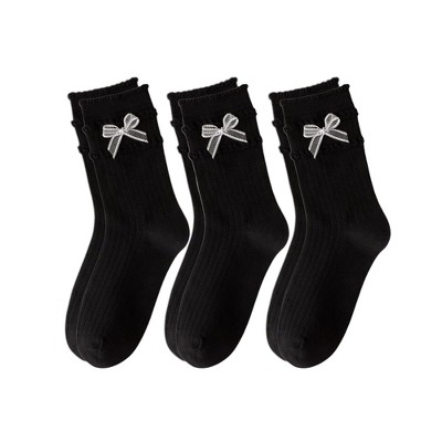 Anna-Kaci 3-Pack Women's Cotton Crew Socks with Ribbed Knit, Satin Bow Accen