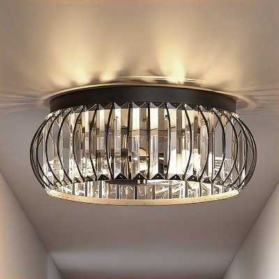 DORESshop 1-Light Semi-Flush Mount Ceiling Light with Matte Black Triangular Crystal Accents, Drum Shade, E26 Socket, Non-Integrated Bulb